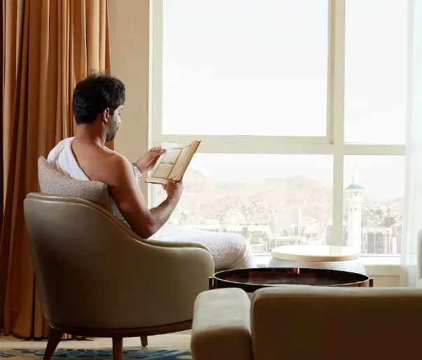 Situated in the heart of the city, just a short stroll from the Holy Mosque and the clock tower, Makarem Ajyad offers extensive and cozy common areas along with first-rate lodging services to all types of visitors, especially pilgrimage services for religious tourists performing the Hajj and Umrah. To fulfill all needs, the hotel offers a variety of amenities, such as a spiritual concierge desk, an Islamic-themed library, 24-hour room service, restaurants offering both local and international cuisine, and multipurpose conference spaces.